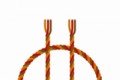 Kroucený třížilový kabel tlustý v barvách JR (hnědá/červená/oranžová) s PVC izolací, průřez vodičů 0,25 mm2. Vysoce ohebný, lanka ze 65 pramenů 0,07 mm, max. 48 V, 5A. Průměr 1,5/2,9 mm. Vyrobeno v Německu. Cena za 1 meter