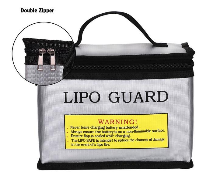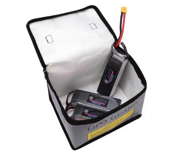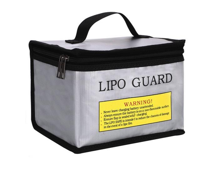 Lipo Battery Safe Guard – Bezpečnostní pouzdro pro lipo baterie, navrženo pro ochranu proti přehřátí, požáru a zkratu. Vyrobeno z odolného materiálu, který zajišťuje bezpečnou manipulaci s bateriemi během skladování a transportu. Ochranný vak z nehořlavého materiálu pro bezpečné cestování s akumulátory. V případě možné exploze akumulátoru zadusí vzniklý oheň. Velikost: 215*120*165mm Váha: 150g