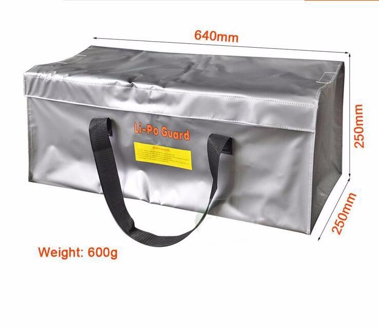 Bezpečnostní pouzdro pro lipo baterie, navrženo pro ochranu proti přehřátí, požáru a zkratu. Vyrobeno z odolného materiálu, který zajišťuje bezpečnou manipulaci s bateriemi během skladování a transportu. Ochranný vak z nehořlavého materiálu pro bezpečné cestování s akumulátory. V případě možné exploze akumulátoru zadusí vzniklý oheň. Velikost: 640x250x250mm