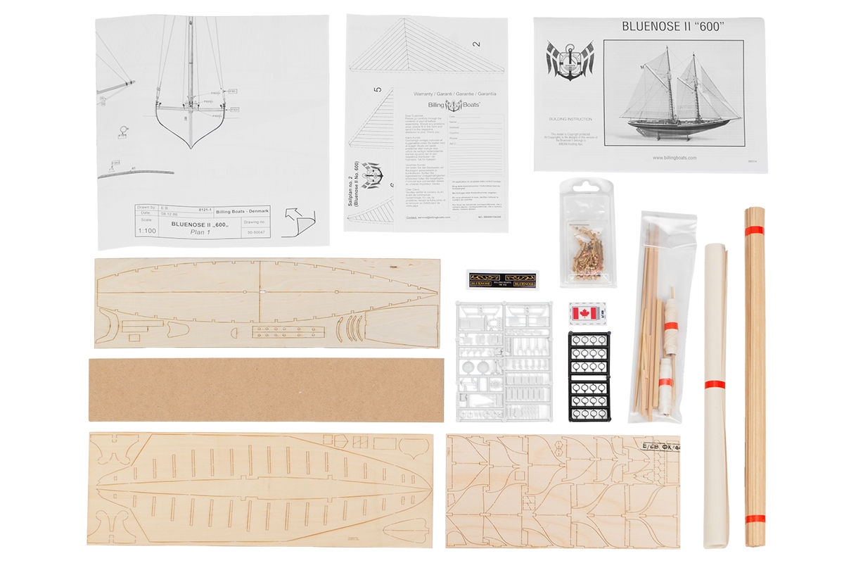 Bluenose má trup klasické dřevěné konstrukce z laserem vyřezávaných dílů s plaňkovanou obšívkou a dřevěnou palubu. Stavebnice obsahuje všechny dřevěné a plastové díly potřebné pro dokončení modelu, maketové příslušenství, plachty atd.