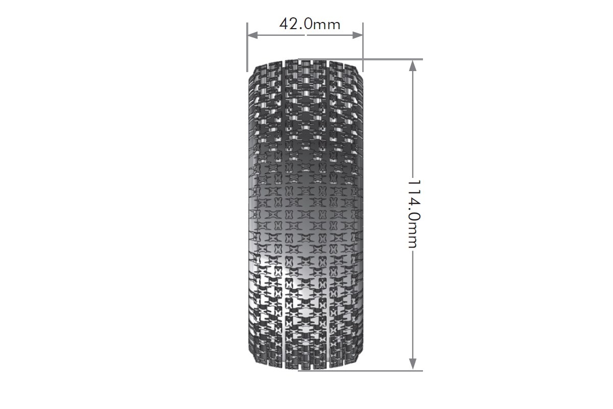Kompletní kola pro buggy 1/8. Pneumatiky vhodné do sucha i do mokra, pro tvrdou i prašnou hlínu a podobné povrchy. Disky pro 17mm hex unašeče.