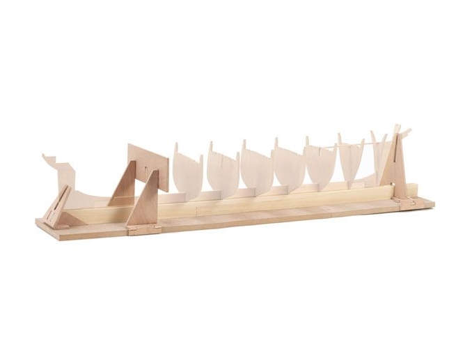 Domácí loděnice - univerzální stavební přípravek pro klasickou stavbu modelů lodí o délce do cca 900 mm. Umožňuje uchycení kýlu a ustavení žeber do přesné kolmé polohy ve vodorovném i svislém směru.