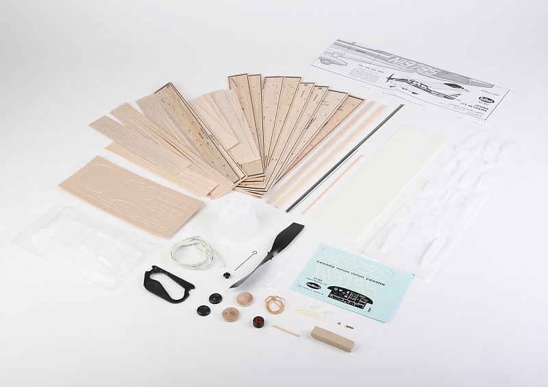 Stavebnice obsahuje: balsové předseknuté díly, balsové nosníky, předseknuté díly z plastikové překližky, vakuově lisované maketové díly (kryt kabiny, kryt motoru, kryty kol...), plastovou vrtuli s hřídelí a hlavicí, gumový svazek (guma 5x1mm), ocelovou strunu na podvozek a další drobné díly, kola, potahový papír, rukojeť a vahadlo pro upoutaný model, aršík mokrých obtisků, stavební plán.
