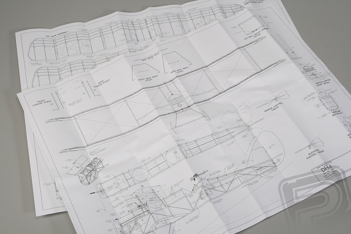 DH-4 je konstruován pro pohon malým stejnosměrným motorem s převodovkou - např. pohonnou jednotkou GWS, která je zakreslena na plánu. V dnešní době nejspíše zvolíte malý střídavý motor - v takovém případě budete muset překonstruovat motorové lože (doplňte novou motorovou přepážku z 2 mm březové překližky), ale to by nemělo představovat závažnější problém. Pro pohodové létání stačí elektromotor třídy AXI 2208 a Li-poly dvoučlánek 800 mAh. "Namotorování" doporučujeme nepřehánět - je to park-flyer, ne raketa.