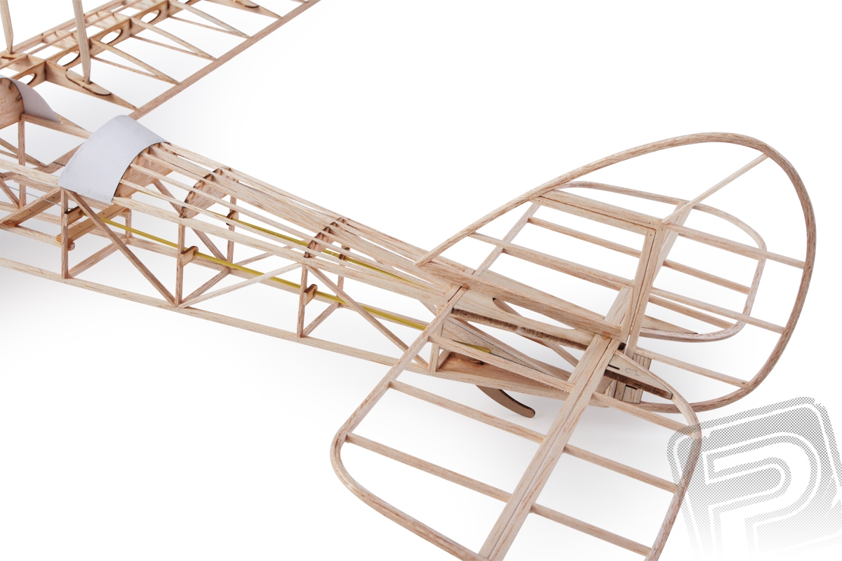 Stavebnice RC polomakety britského lehkého bombardovacího dvojplošníku určená pro pohon elektromotorem. Model je jednoduché klasické celobalsové konstrukce v rozsypu s laserem vyřezávanými dřevěnými díly, maketovými doplňky z vakuově tvářeného plastu, plastovými díly zhotovenými vstřikovým lisováním a z kovu. Trup je konstruován běžnou minimaketářskou technologií z bočnic slepených z balsových nosníků, které spojíte polopřepážkami a příčkami do příhradového rámu. Výsledné tvary získáte po nalepení několika dodatečných podélníků. Křídla jsou klasické konstrukce z nosníků a žeber, ocasní plochy z balsových lišt a laserem vyřezávaných dílů. Drobnou "vychytávkou" je zhotovování obvodových dílů ocasních ploch a koncových oblouků křídel z balsových pásků laminovaných za mokra. Získáte tak snadno překvapivě pevné a velmi lehké díly - a bez použití uhlíku! Výkresy potřebných šablon opět najdete v návodu. Celý model můžete potáhnout papírem dodávaným ve stavebnici nebo vhodnou lehkou nažehlovací fólií s malou smrštivostí, jako je Airspan nebo Litespan.