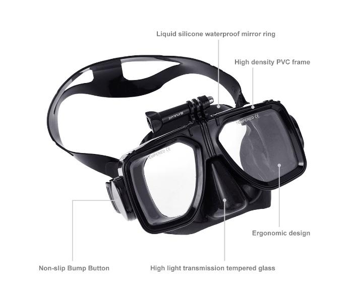 Potápěčské brýle (goggles) s montážními držáky jsou ideální pro podvodní natáčení. Brýle jsou navrženy pro pohodlné nošení a poskytují skvělý výhled při potápění nebo šnorchlování. Balení obsahuje i EVA úložný obal pro bezpečné uložení brýlí a montážní šroub pro snadné připojení k vaší kameře. Perfektní pro všechny vodní dobrodružství a podvodní záběry.