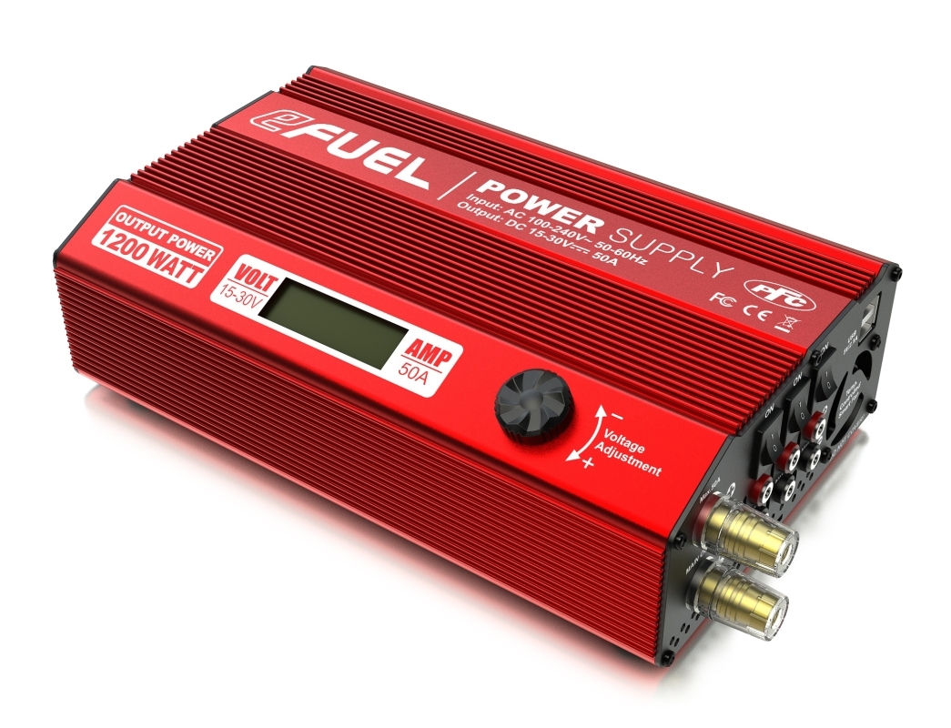 Vysokovýkonný – a přitom lehký, kompaktní, v odolném hliníkovém pouzdře – stabilizovaný síťový zdroj eFUEL 50A je ideální pro napájení modelářských nabíječů a dalších zařízení vyžadujících napájení 15-30 V stejnosměrných.