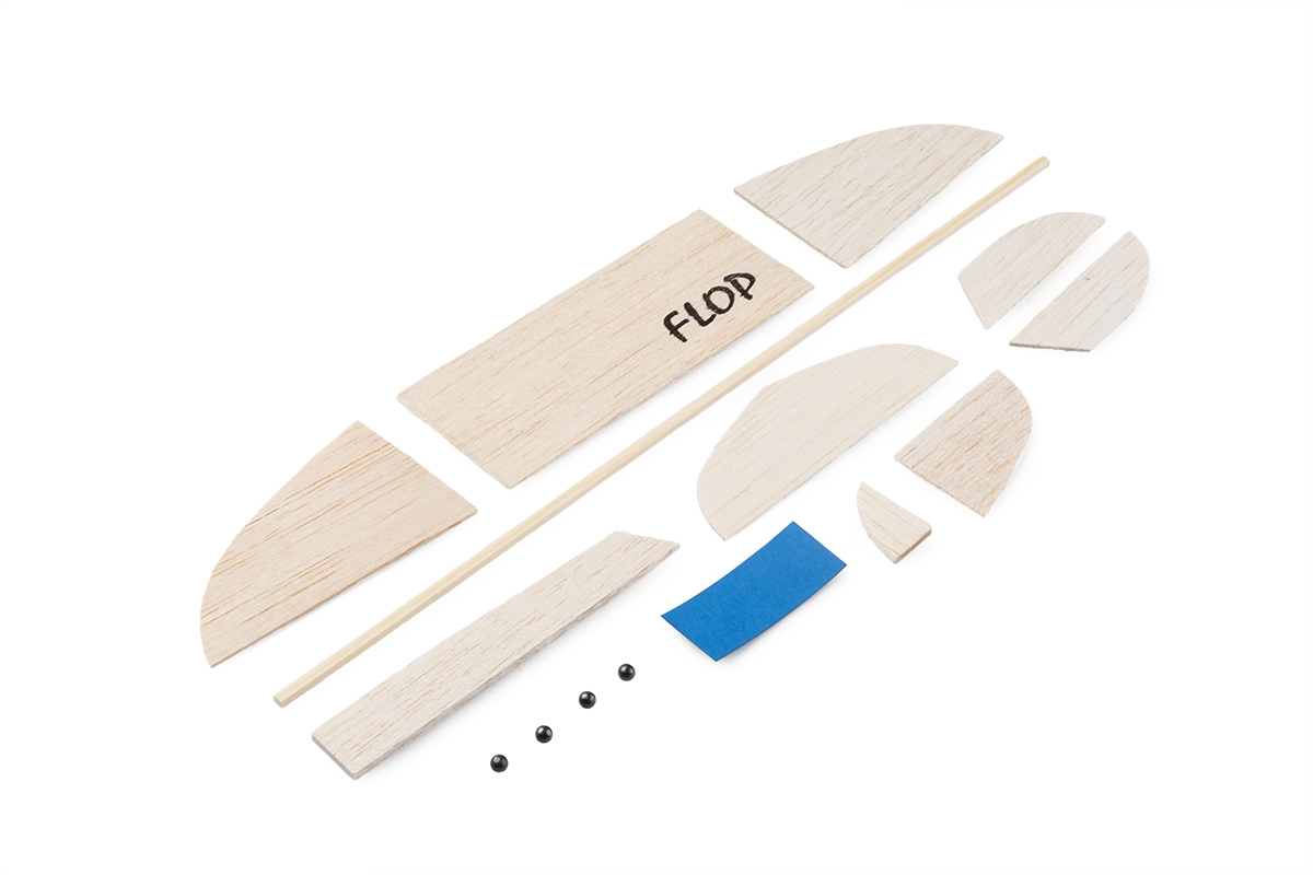 Celobalsové házedlo s velmi jednoduchou stavbou, ideální jako úplně první model, který postavíte během několika desítek minut. Díky přesným CNC vyřezávaným dílům nebudete potřebovat žádné nástroje, pouze acetonové lepidlo (Kanagom, UHU-hart apod.) a špendlíky. Vzhledem ke kapesním rozměrům si s Flopem skvěle zalétáte kdekoliv, třeba na nedělní odpolední vycházce do parku.