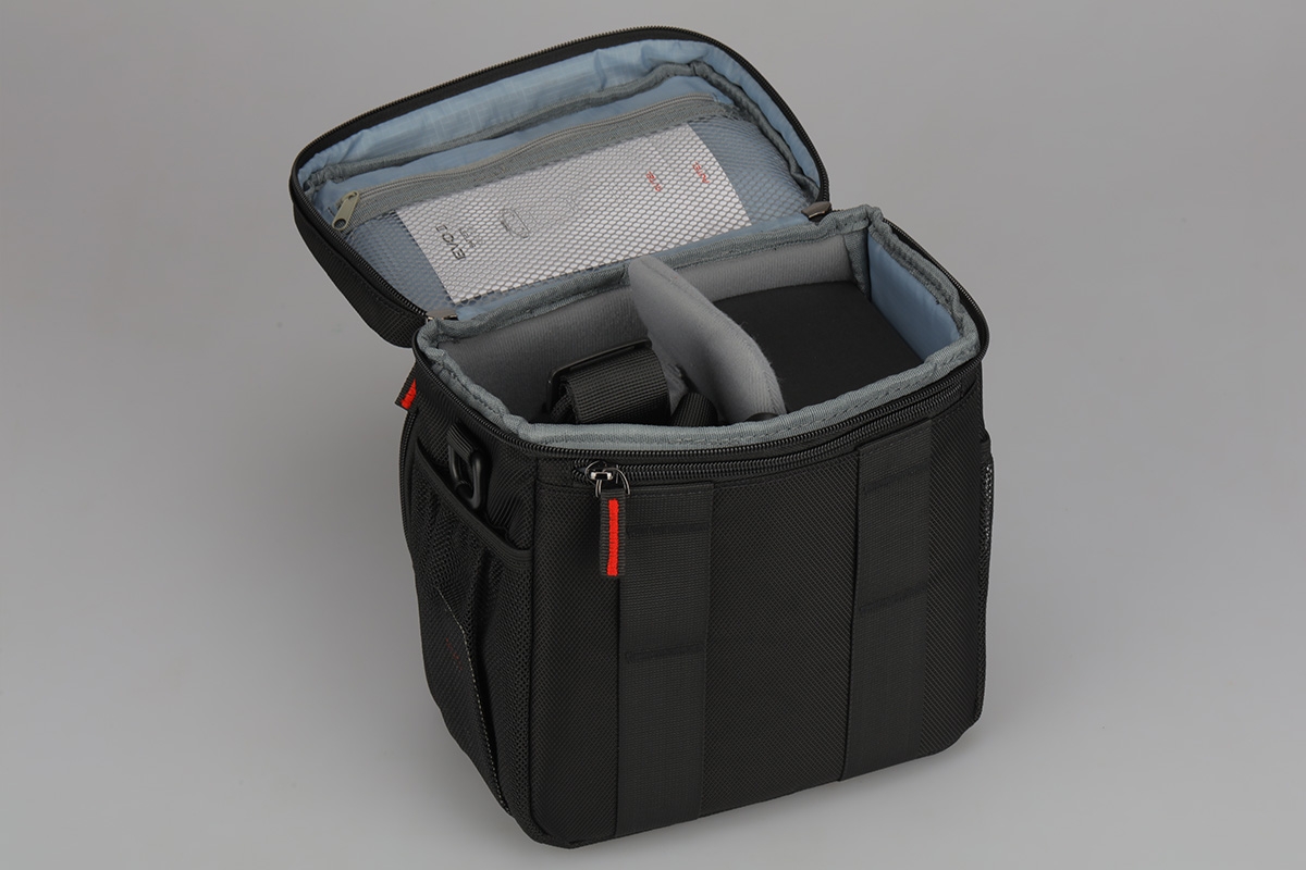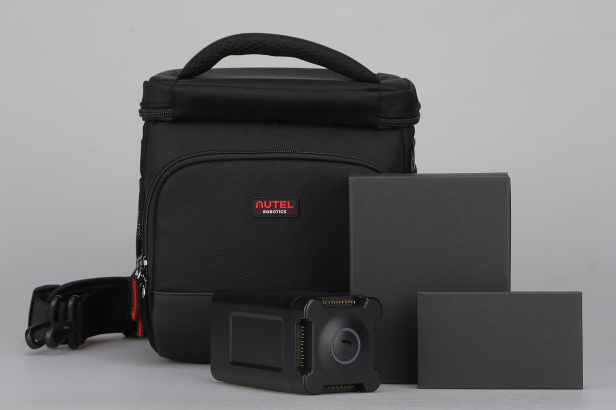 Obsahem balení je 2x baterie, nabíjecí adapter pro čtyři baterie, 2 páry vrtulí a batoh přes rameno.