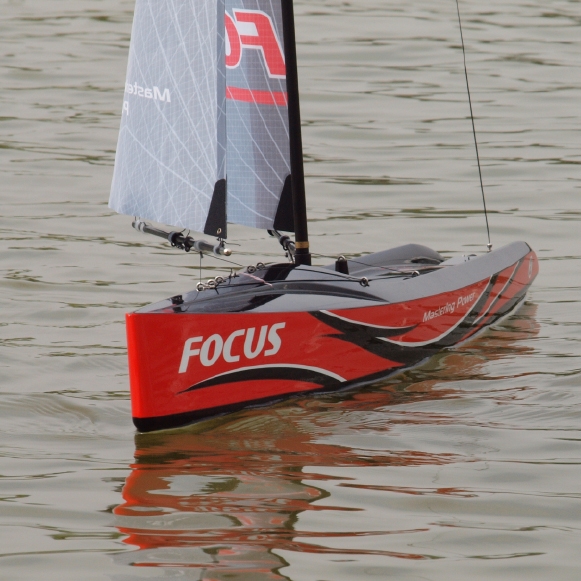 FOCUS II je model plachetnice soutěžní plachetnice třídy 1M, se kterým si výborně zajezdíte na každé větší vodní ploše. I přes větší rozměry („metrový“ trup a celková výška 2046 mm) je to díky snadno demontovatelnému dvoudílnému stěžni a kýlu jednoduše přepravitelný věrný společník na víkendové výpravy nebo dovolenou u vody. Stačí jenom čtyři tužkové alkalické baterie nebo akumulátory do vysílače a čtyři pro přijímač, upevnit stěžeň, kýl, kormidlo a plachty - a můžete vyrazit. FOCUS II je totiž dodáván jako RC set - předmontovaná plachetnice s nainstalovanou elektronikou a čtyřkanálovým proporcionálním vysílačem 2.4GHz.