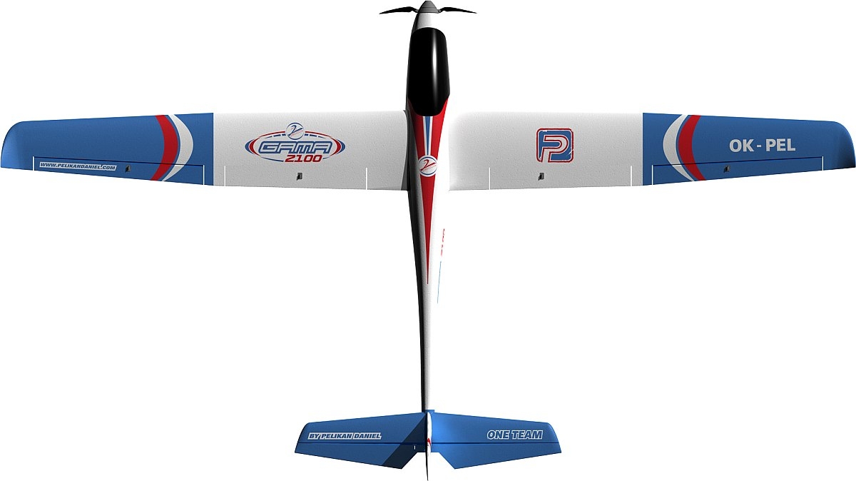 Nová GAMA 2100 na první pohled navazuje na naši úspěšnou a velmi oblíbenou ALPHU 1500. Kromě prostého zvětšení rozměrů (rozpětí 2100 mm) jsme jí do vínku dali důkladnou konstrukci z pěnového EPP důmyslně zpěvněnou výztuhami z uhlíkových trubek a pásnic; standardní ovládané funkce (křidélka, směrovka, výškovka, otáčky motoru) jsme doplnili o možnost ovládání vztlakových klapek. GAMA 2100 díky tomu představuje výborný školní model pro začátečníky - je velká, a tudíž snadno "čitelná" ve vzduchu, je stabilní a má výbornou klouzavost - stejně jako ideální rekreační model, který můžete dále "šlechtit" a bez velkých dodatečných nákladů se seznámit s pilotáží "pořádných" větroňů s pokročilou mechanizací křídla.