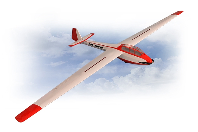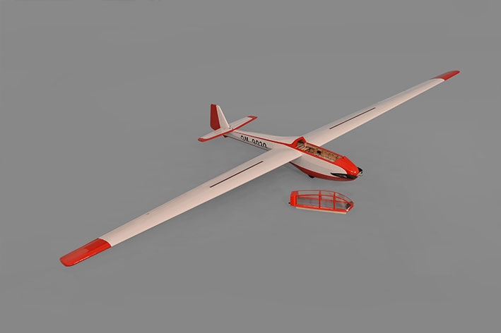 Polomaketa historického větroně o rozpětí křídel 330cm pro termické plachtění. Připraven pro instalaci elektropohonu. Konstrukční trup, křídlo i ocasní plochy, ovládaná křidélka, směrovka, výškovka.