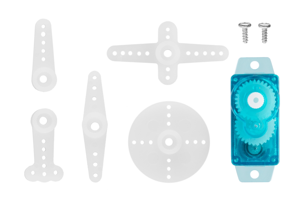 Pikoservo 5g s plastovými převody pro malé elektrolety a větroně. Tah 0,8 kg/cm, rychlost 0,14s/60st při 4,8 V, rozměry 21,5x11,8x20,9 mm, napájení 4,8-6V.