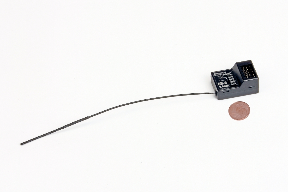 Attention! Receiver can only be operated with the transmitters X-8N and X-8E! Graupner HOTT technology. Only suitable for X-8N and X-8E car transmitter, adapted faster response time (1.5 ms). With GRAUPNER HoTT 2.4 GHz technology, the receiver has a new hopping telemetry transmission high-frequency unit with state-of-the-art components and the latest software. The receiver operates even at voltages of about 2.5 volts ensures full functionality even when voltage fluctuates. Size and weight have been reduced. The receiver input sensitivity and thus the range have been increased further. Horizontal Servo connections facilitate installation in tight spaces.