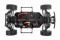 Podvozek má nezávislé zavěšení kol a horní ramena i spojovačky řízení jsou vybaveny spojovačkami s šestihranem a pravo/levým závitem pro snadné nastavení a seřízení geometrie podvozku. Jistotu a stabilitu při jízdě modelu dodávají olejové tlumiče.