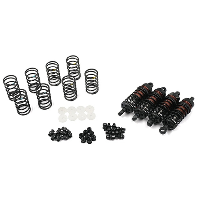 Big Bore Go! sada velkoobjemových tlumičů - přidejte olej a můžete vyrazit! Obsahuje dva různé typy kulových čepů pro různé typy vozů. Součástí jsou různé pružiny, abyste si mohli vyladit tvrdost odpružení a nemuseli po zakoupení této sady tlumičů hledat jiné pružiny. Pokud to s laděním myslíte opravdu vážně, jsou součástí balení také pístky s různým vrtáním, abyste mohli nastavit, jak tlumič reaguje na tlumicí olej.