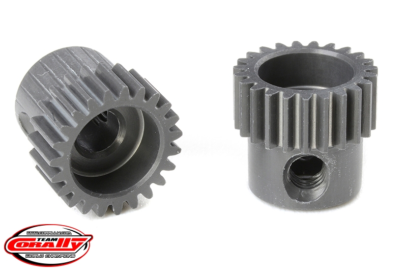Krátké provedení, materiál tvrzený hliník 7075 T6, 23 zubů, modul ozubení 64DP. Pro hřídel motoru o průměru 3.17 mm (1/8 in). Pastorky TEAM CORALLY jsou vyráběny frézováním a následně tvrzeny, čímž je zajištěna vysoká přesnost ozubení. Všechny pastorky TEAM CORALLY jsou vyrobeny v EU.