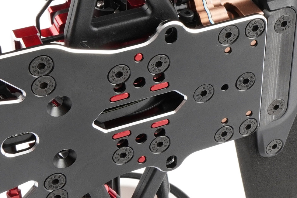 Nyní má aktualizované a optimalizované zavěšení tlumičů a vahadlo z uhlíkových vláken, které snižuje naklánění při průjezdu zatáčkou. Nové polohovací čepy podvozku na přepážkách, uchycení motoru a skříně tlumičů nejen zvyšují odolnost, ale také nám umožnily tyto díly přepracovat a odlehčit, čímž jsme ušetřili celkem přes 25 g.