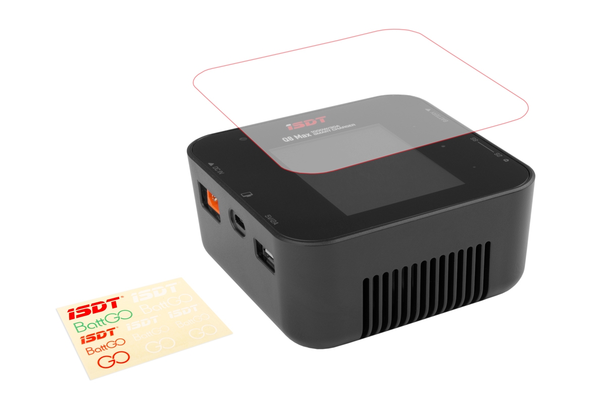 Sada nabíječe obsahuje: nabíječ ISDT Q8 Max, chránič displeje, návod.