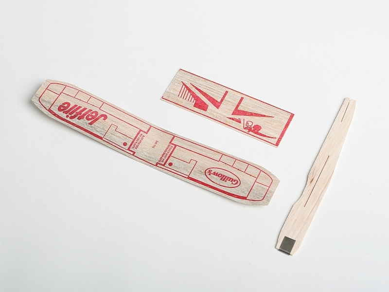 Stavebnice obsahuje: trup se zátěží, vyseknuté a potištěné křídlo již vytvarované do vzepětí, předseknuté ocasní plochy a kabinu.