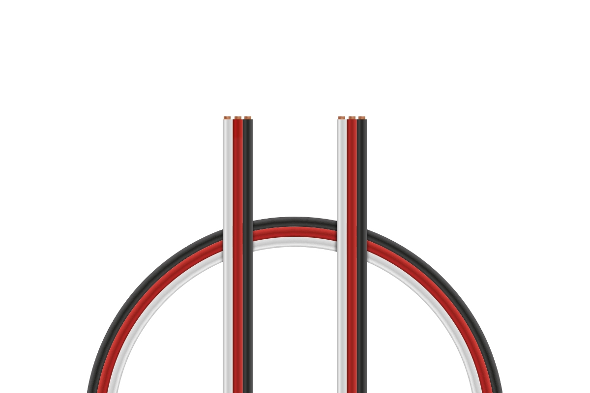 Plochý třížilový kabel tlustý v barvách Futaba (černá/červená/bílá) s PVC izolací, průřez vodičů 0,14 mm2. Vysoce ohebný, lanka ze 72 pramenů 0,05 mm, vnější rozměr 1,1x3,9 mm, max. 48 V, 3A. Vyrobeno v Německu. Cena za 1 meter
