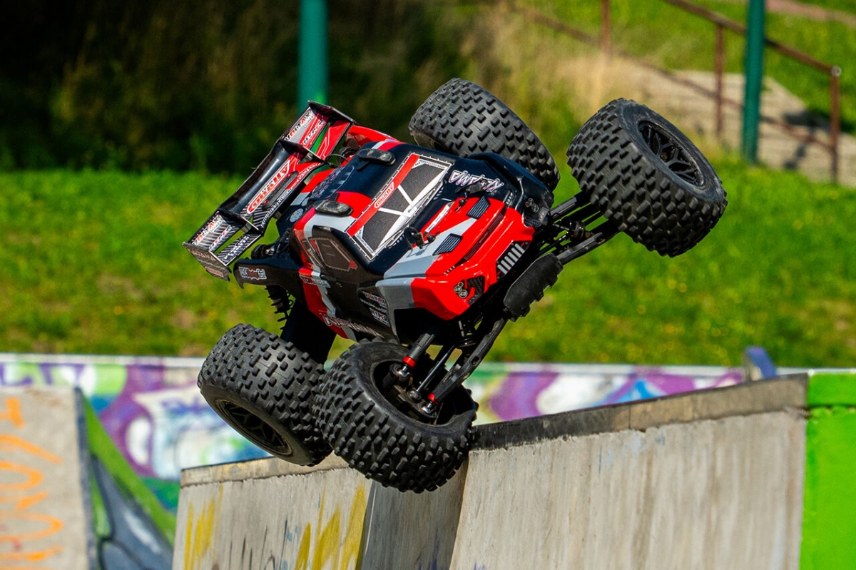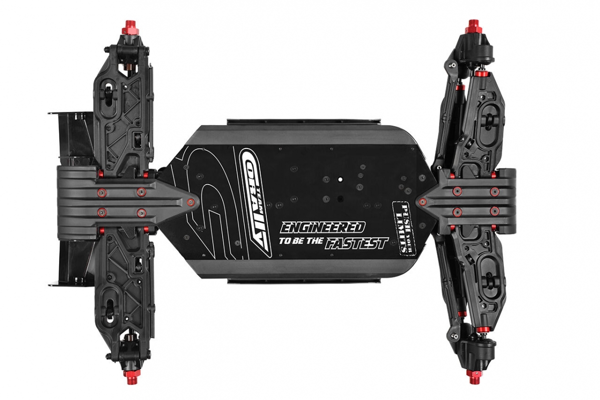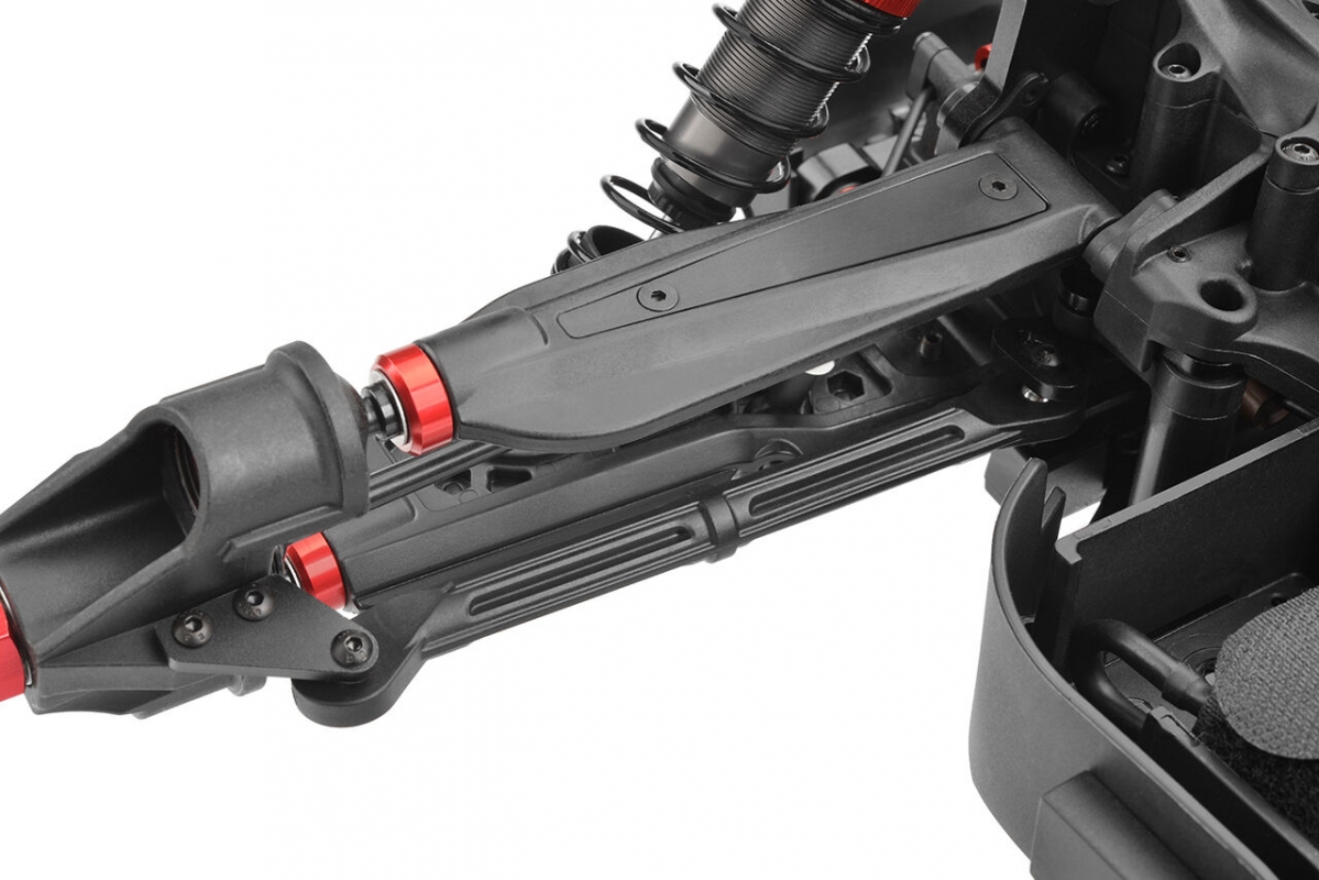 Jádrem tohoto hnacího ústrojí jsou CNC kuželové převody, zářivě červeně eloxovaná hliníková centrální skříň diferenciálu a robustní pružinové ocelové vývody - symfonie pečlivě sehraná pro neústupný výkon a dlouhou životnost. A ve světě Monster Trucků s nadměrnými pneumatikami a koly se vlastnosti tohoto robustního hnacího ústrojí ještě znásobí!