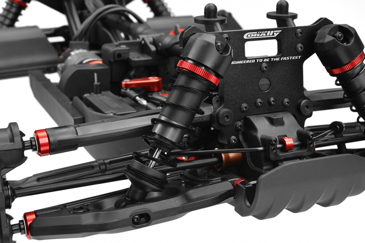 Konstrukci modelu Kagama kralují tři důležité součásti: precizně navržená ramena zavěšení, inovativní výztuhy podvozku a odolné, přesné tlumiče. Ramena zavěšení byla zcela přepracována a upřednostňují odolnost a přesnost, aniž by zvyšovala hmotnost. To je doplněno eloxovanými hliníkovými čepy závěsů a úchyty otočných koulí, které poskytují bezkonkurenční pevnost a posilují klíčové prvky zavěšení proti nárokům extrémního bourání. Kagama se odlišuje novým systémem 4x4 upevnění výztuh podvozku, který zvyšuje odolnost i výkon tím, že izoluje přepážky od nárazů a otřesů. Kromě toho je vozidlo vybaveno robustními 16mm velkorozměrovými tlumiči s hliníkovými těly se závitem a tvrdými pružinami, které zaručují spolehlivost a ovladatelnost potřebnou pro rozsáhlé bashingy. Díky použití silných 4mm laděných pístů si tyto tlumiče poradí s hustšími kapalinami potřebnými k adekvátnímu tlumení náročného terénu nebo překážek, zatímco naddimenzované spodní konce tlumičů zvyšují celkovou odolnost. Buďte svědky bezproblémové integrace těchto prvků v akci, která zajišťuje kontrolovanou přesnost i v těch nejnáročnějších podmínkách.
