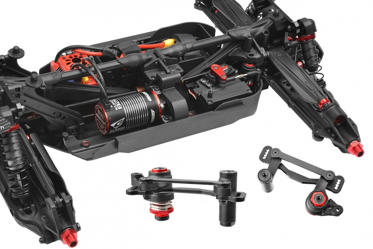 • Předpřipravený Monster Truck v měřítku 1:8 dostupný jako RTR nebo samotný podvozek
