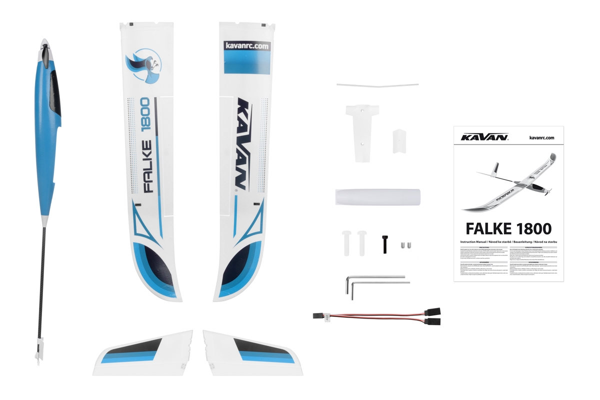 Pro ovládání modelu v nouzi vystačíte i se čtyřkanálovou RC soupravou s mixem pro motýlkové ocasní plochy – v základním provedení jsou křidélka zapojena pomocí Y-kabelu jen do jednoho kanálu. Ideální je samozřejmě použití aspoň šestikanálové počítačové RC soupravy umožňující nezávislé ovládání křidélek dvěma servy a jejich mixování v roli aerodynamické brzdy (obě křidélka se vychylují souhlasně nahoru), což dnes umí i cenově dostupný Radiolink AT9S nebo AT10II nebo Futaba T6K či T10J. V takovém případě je nutno nahradit Y-kabel křidélek v trupu dvěma (15–30 cm) prodlužovacími kabely. V návodu samozřejmě nechybí důkladná tabulka s prověřeným výchozím nastavením výchylek kormidel (včetně mixů), abyste FALKE snadno připravili k letu.