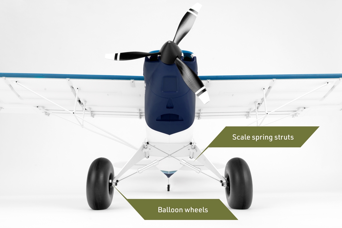 Hlavní podvozek je pevný, duralový s odpruženými maketovými vzpěrami. Drátová ostruha je spřažená se směrovkou.
