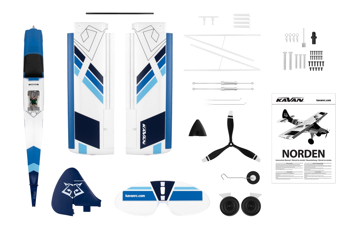 Pro ovládání modelu v nouzi vystačíte i se šestikanálovou počítačovou RC soupravou bez speciálních funkcí – v základním provedení jsou křidélka, klapky, směrovka zapojeny pomocí zapojovací desky nainstalované v prostoru kabiny vždy jen do jednoho kanálu. Deska také zajišťuje napájení LED světel. Ideální je samozřejmě použití aspoň sedmikanálové počítačové RC soupravy umožňující nezávislé ovládání křidélek a klapek dvěma servy, což dnes umí i cenově dostupný Radiolink AT9S nebo AT10II nebo Futaba T6K či T10J. V takovém případě je nutno serva křidélek a klapek připojit samostatně (můžete použít doplňkovou sadu kabelů, která se prodává zvlášť). V návodu samozřejmě nechybí důkladná tabulka s prověřeným výchozím nastavením výchylek kormidel, abyste Nordena snadno připravili k letu, i když to třeba bude váš první model s „plnou mechanizací“ křídla.