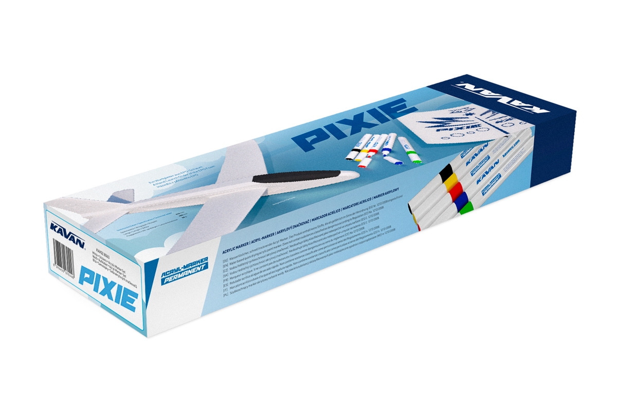 Volně létající házedlo zhotovené z prakticky nezničitelného pěnového polyolefinu (EPO) pro každého. PIXIE připravíte k letu během minuty, žádné lepidlo není třeba. Stačí zasunout křídlo a vodorovnou ocasní plochu do výřezů v trupu, popustit uzdu fantazii a celý model pomalovat dodávanými akrylovými popisovači, nalepit samolepící obtisky - PIXIE hodíte a už to letí. Díky nezdolné houževnatosti a „gumovému“ charakteru EPO pěny vám nebo vašim ratolestem dá dost velkou práci ji zničit.
