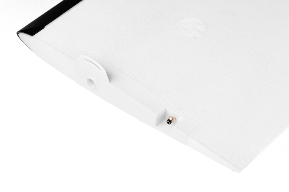 Křídlo modelu z pěnového EPO je dvojdílné, vyztužené uhlíkem. Poloviny křídla se nasouvají na uhlíkovou trubkovou spojku, na místě jsou zajištěny šrouby. Jsou ovládány nezávisle dvěma servy s krátkými přímými drátovými táhly; pro snadné nastavení neutrální polohy jsou na trupu trojúhelníkové značky určující středovou polohu odtokové hrany.