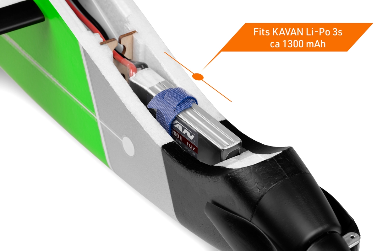 Trup modelu je zhotoven z vysoce odolného pěnového EPO (extrudovaného polyolefinu) s důkladnými vnitřními uhlíkovými výztuhami. V přídi je nainstalován střídavý elektromotor C2820-1450 se sklopnou vrtulí 7x6“ a regulátorem KAVAN R-20SB Plus. Kryt kabiny je odnímatelný, upevňuje se pomocí čepu vpředu a mechanického uzávěru vzadu. V přídi najdete dostatek prostoru pro pohonný akumulátor a přijímač. Mikroserva s kovovými převody pro ovládání polovin křídla, směrovky a výškovky jsou uložena v prostoru pod křídlem. Ocasní plochy jsou ovládány lanovody, poloviny křídla nastavitelnými táhly s kulovými čepy.