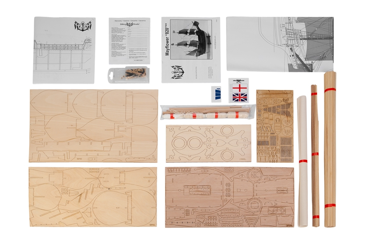 Mayflower má trup klasické dřevěné konstrukce z laserem vyřezávaných dílů s plaňkovanou obšívkou a palubu a nástavby. Stavebnice obsahuje všechny dřevěné, plastové a kovové díly potřebné pro dokončení modelu, maketové příslušenství, plachty atd.