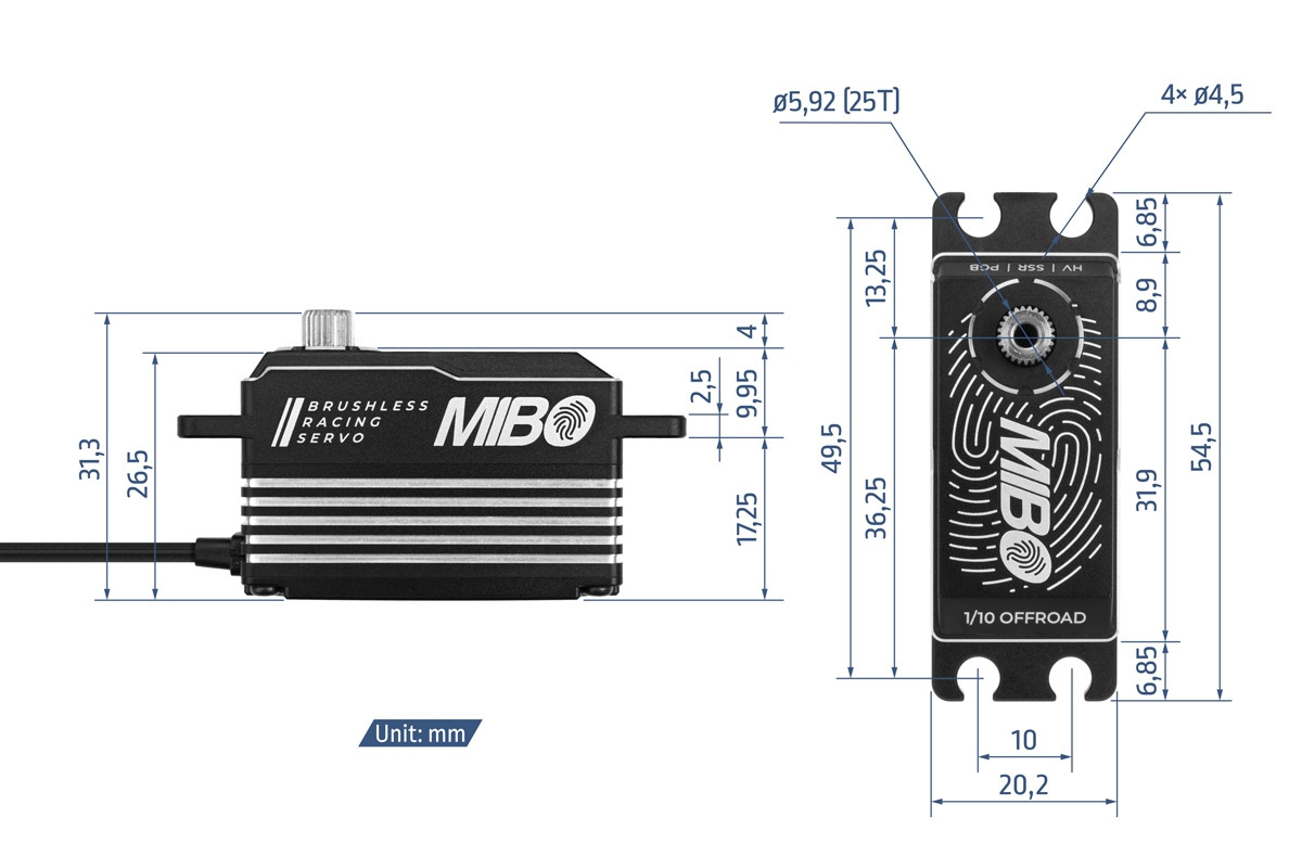 MIBO 1/10 Offroad Low Profile (0.07s/20kg/8.4V) Brushless Servo