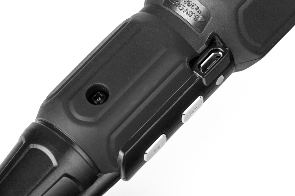 3.6V 900mAh Li-Ion batterie umožňuje dlouhodobé použití bez potřeby výměny článků. Kapacita postačí pro mnoho hodin práce, nabití pak pomocí přiloženého mikro USB kabelu nezabere víc, než 60 minut.