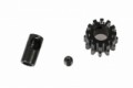 Krátké provedení, materiál tvrzená ocel, 13 zubů, modul ozubení 32DP. Pro hřídel motoru o průměru 5.00 mm. Pastorky TEAM CORALLY jsou vyráběny frézováním a následně tvrzeny, čímž je zajištěna vysoká přesnost ozubení. Všechny pastorky TEAM CORALLY jsou vyrobeny v Evropě.
