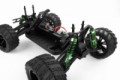 Model monster truck v měřítku 1:10 s pohonem všech kol 4x4, poháněný stejnosměrným motorem vč. RC volantové soupravy 2,4 GHz. Voděodolný regulátor 60A, přijímač a 15kg servo. Bez pohonného akumulátoru a nabíječe. Zelená karoserie.