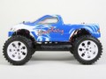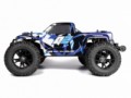 Model monster truck v měřítku 1:10 s pohonem všech kol 4x4, poháněný 3300KV střídavým motorem vč. RC volantové soupravy 2,4 GHz. Voděodolný regulátor 60A, přijímač a 15kg servo. Bez pohonného akumulátoru a nabíječe. Modrá karoserie.