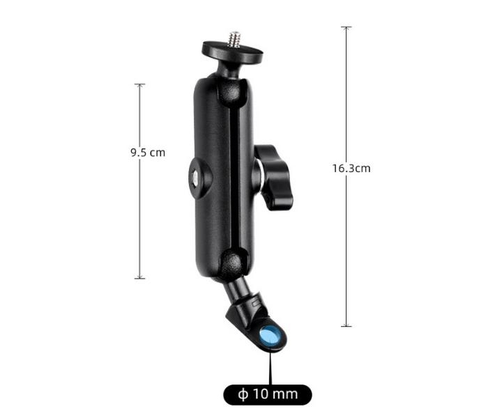 Držák na motorku (typ 2) vhodný pro 10mm základnu zpětného zrcátka. Délka 16,3 cm, váha 127,3 g. Umožňuje 360° otáčení pro flexibilní nastavení úhlu záběru. Součástí balení je šroub a adaptér. Kompatibilní s GoPro, Insta360 ONE R, DJI Osmo Action, Pocket 2, FIMI Palm 2 a dalšími akčními kamerami. Ideální pro stabilní natáčení během jízdy.