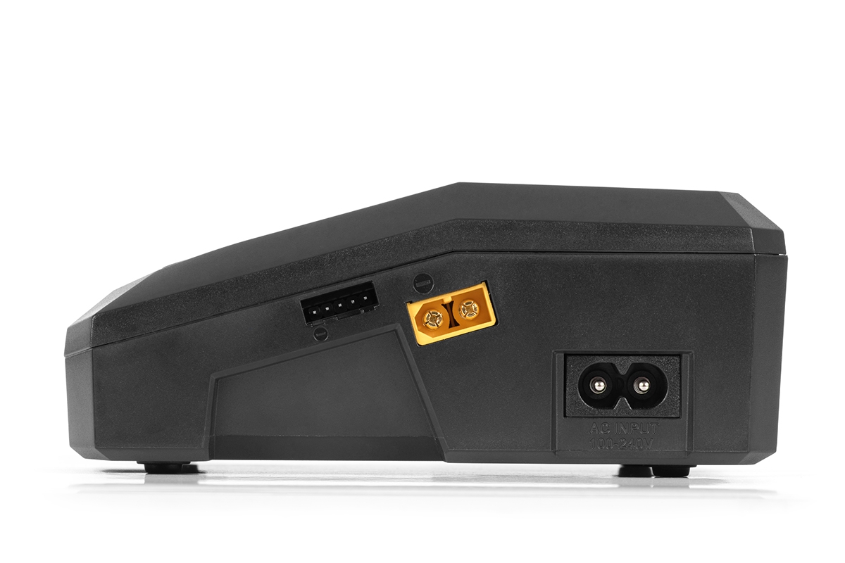 Nabíječ je v obou kanálech vybaven výstupními zásuvkami XT60 a univerzálními zásuvkami pro servisní konektory JST-XH umožňující přímo zapojit silové kabely akumulátoru a servisní konektory JST-XH sad 2-4S – pokud používáte sady s konektory XT60 a JST-XH, obejdete se zcela bez nabíjecích kabelů a adaptérů.