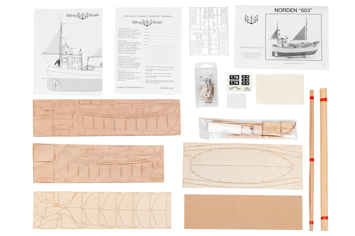 Norden má trup klasické dřevěné konstrukce z laserem vyřezávaných dílů s plaňkovanou obšívkou, dřevěnou palubu a nástavbu. Stavebnice obsahuje všechny dřevěné a plastové díly potřebné pro dokončení modelu, maketové příslušenství (např. poziční světla, kotvu, záchranné kruhy, plachty, lodní šroub atd.).