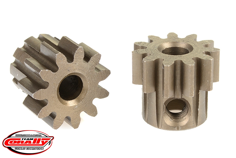 Krátké provedení, materiál tvrzená ocel, 11 zubů, modul ozubení 32DP. Pro hřídel motoru o průměru 3.17 mm (1/8 in). Pastorky TEAM CORALLY jsou vyráběny frézováním a následně tvrzeny, čímž je zajištěna vysoká přesnost ozubení. Všechny pastorky TEAM CORALLY jsou vyrobeny v EU.