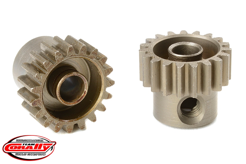 Krátké provedení, materiál tvrzená ocel, 19 zubů, modul ozubení 48DP. Pro hřídel motoru o průměru 3.17 mm (1/8 in). Pastorky TEAM CORALLY jsou vyráběny frézováním a následně tvrzeny, čímž je zajištěna vysoká přesnost ozubení. Všechny pastorky TEAM CORALLY jsou vyrobeny v EU.
