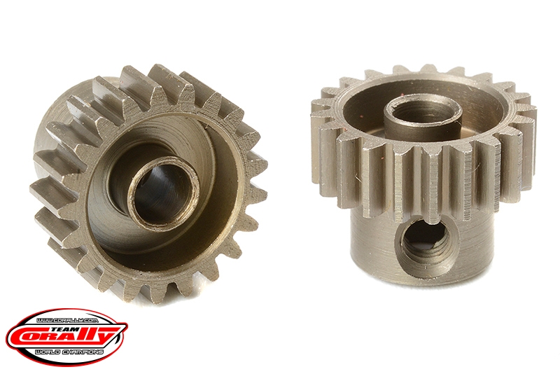 Krátké provedení, materiál tvrzená ocel, 21 zubů, modul ozubení 48DP. Pro hřídel motoru o průměru 3.17 mm (1/8 in). Pastorky TEAM CORALLY jsou vyráběny frézováním a následně tvrzeny, čímž je zajištěna vysoká přesnost ozubení. Všechny pastorky TEAM CORALLY jsou vyrobeny v EU.