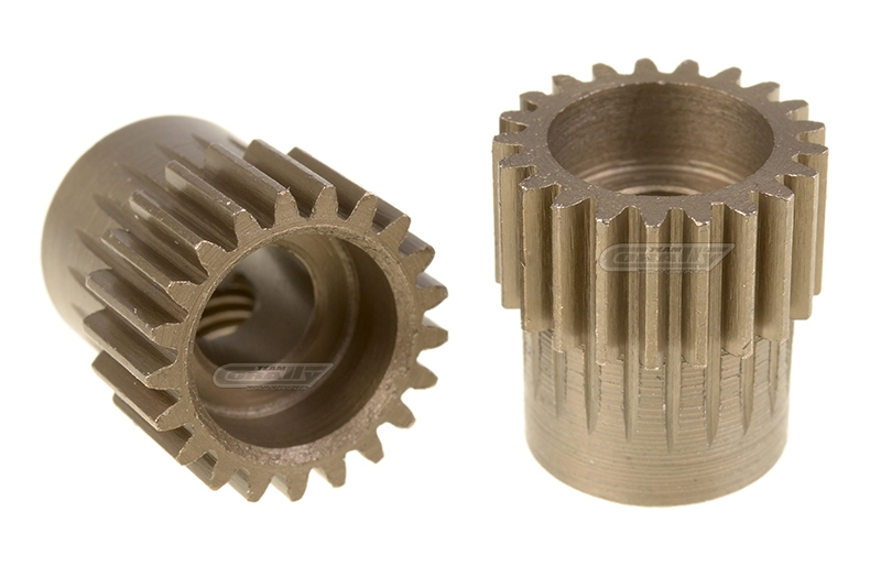 Krátké provedení, materiál tvrzená ocel, 21 zubů, modul ozubení 48DP. Pro hřídel motoru o průměru 5.00 mm. Pastorky TEAM CORALLY jsou vyráběny frézováním a následně tvrzeny, čímž je zajištěna vysoká přesnost ozubení. Všechny pastorky TEAM CORALLY jsou vyrobeny v Evropě.