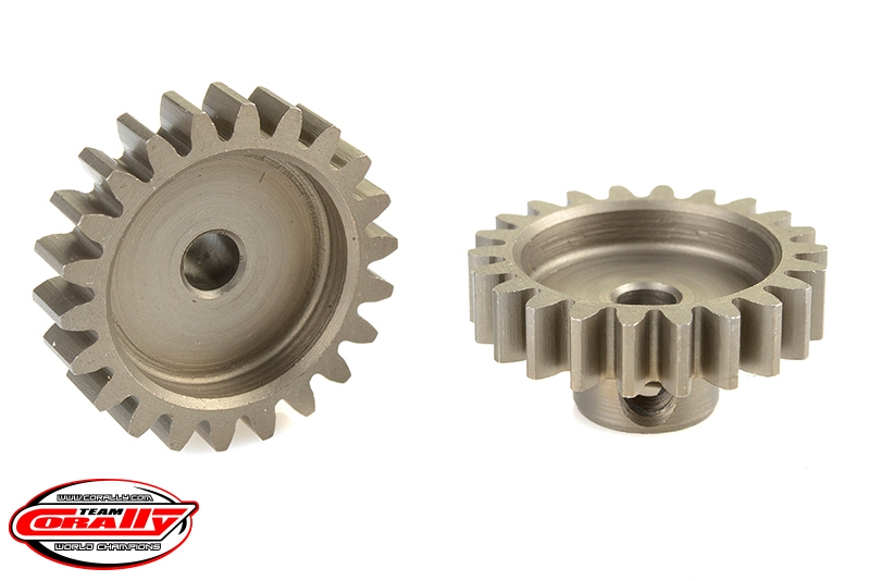 Krátké provedení, materiál tvrzená ocel, 22 zubů, modul ozubení 32DP. Pro hřídel motoru o průměru 3.17 mm (1/8 in). Pastorky TEAM CORALLY jsou vyráběny frézováním a následně tvrzeny, čímž je zajištěna vysoká přesnost ozubení. Všechny pastorky TEAM CORALLY jsou vyrobeny v EU.