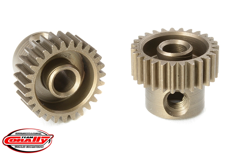 Krátké provedení, materiál tvrzená ocel, 27 zubů, modul ozubení 64DP. Pro hřídel motoru o průměru 3.17 mm (1/8 in). Pastorky TEAM CORALLY jsou vyráběny frézováním a následně tvrzeny, čímž je zajištěna vysoká přesnost ozubení. Všechny pastorky TEAM CORALLY jsou vyrobeny v EU.