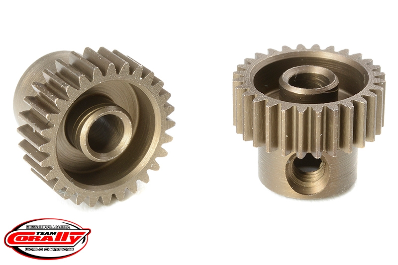 Krátké provedení, materiál tvrzená ocel, 28 zubů, modul ozubení 64DP. Pro hřídel motoru o průměru 3.17 mm (1/8 in). Pastorky TEAM CORALLY jsou vyráběny frézováním a následně tvrzeny, čímž je zajištěna vysoká přesnost ozubení. Všechny pastorky TEAM CORALLY jsou vyrobeny v EU.